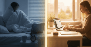 おしごとでもこころでも、どっちが先でもいいけど、ふつうの会社で働くためには、このせいかつのリズムづくりが、すごーく大事なんだ。